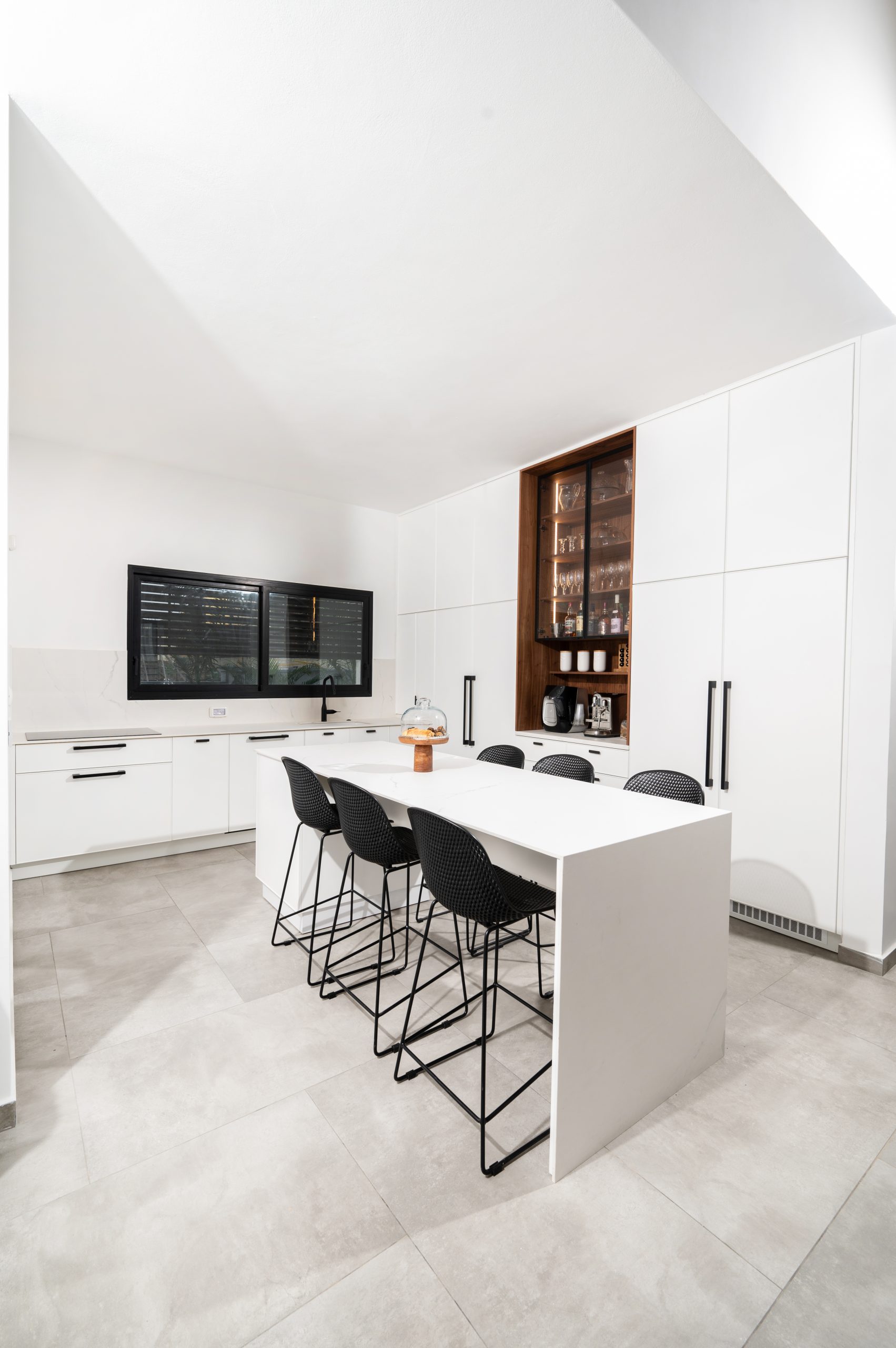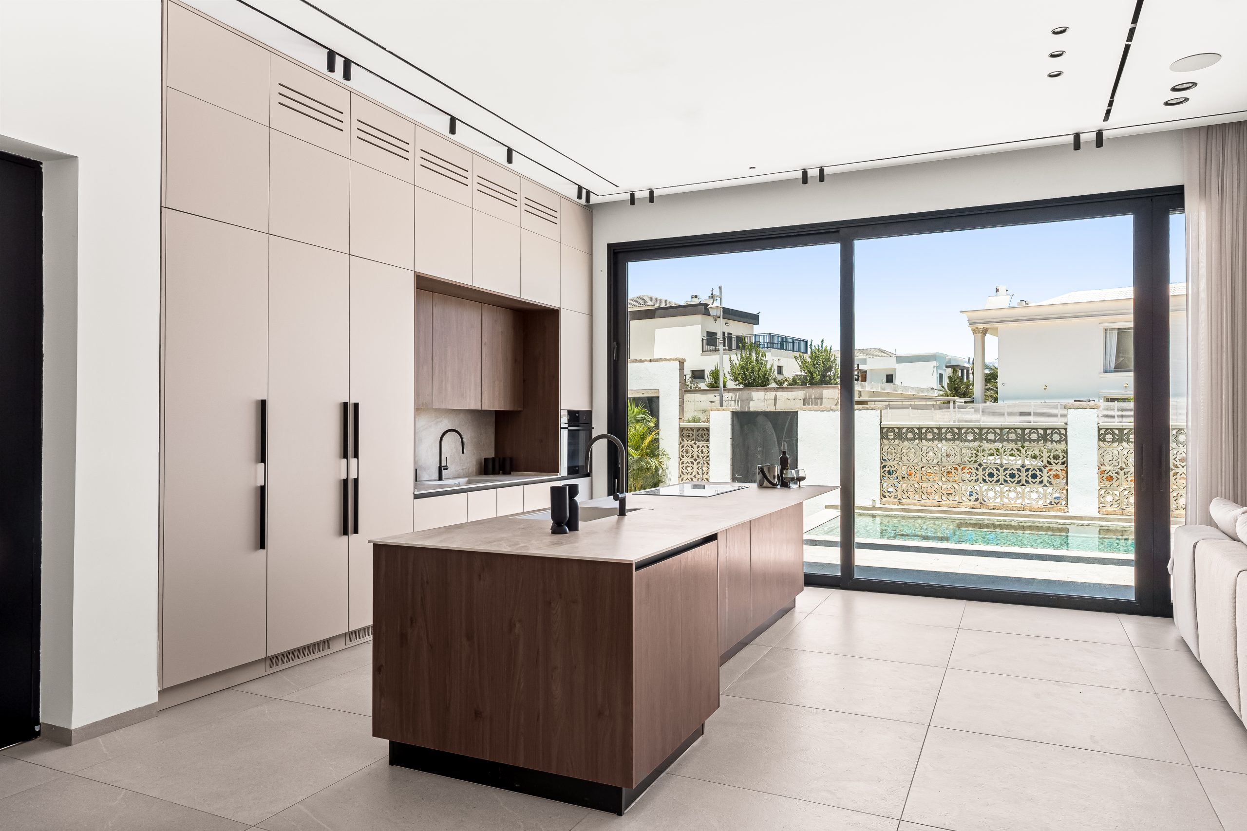פתרונות אחסון עד התקרה, מגירות עמוקות ופרזול חכם שמנצלים כל סנטימטר בלי לוותר על תחושת מרחב ואור.